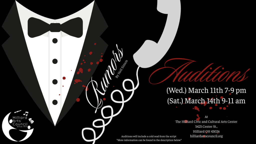 Auditions will be held in September. Check back for more details or contact Robin Brenneman at robin@hilliardartscouncil.org